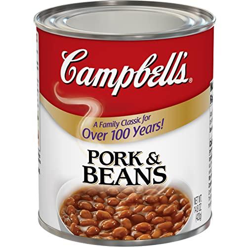 Enjoy a homestyle classic any day of the week with Campbells Pork and Beans. These tender canned beans combine savory pork with flavorful spices and tomato for a sweet and savory favorite. Ready in minutes, this canned food makes an ideal quick and easy dish on its own, or as a side dish to a family dinner. Each 14.8 oz can contains three hearty servings. Serve your favorite meals with Pork and beans from Campbell's, a family classic for over 100 years. In addition to Pork and Beans, Campbell's offers Beans and Franks and Country Style Sausage Gravy.